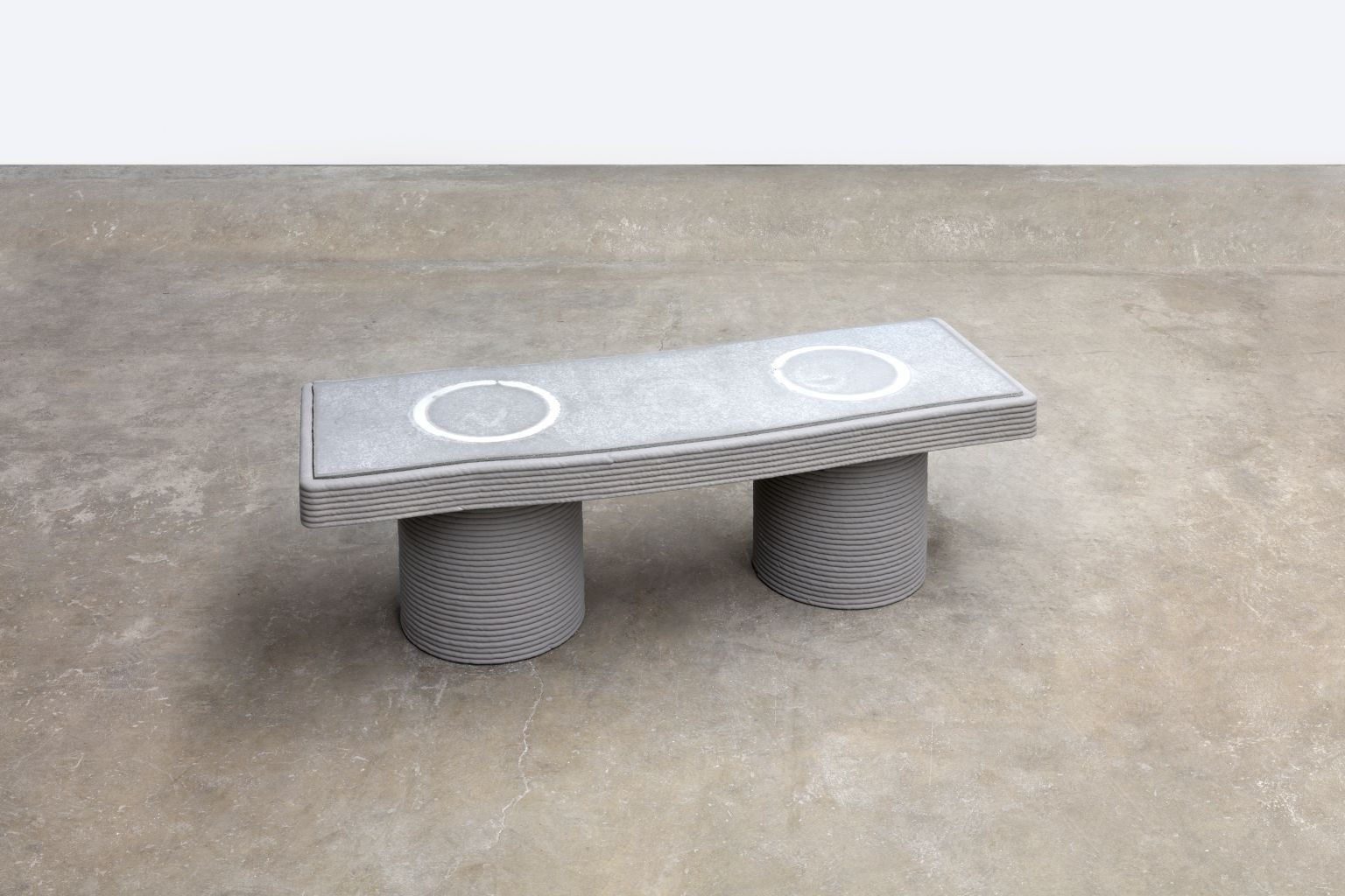 Inessa Hansch présente un banc d’extérieur en béton réalisé de manière semi industriel conjuguant technique de coffrage et impression 3D additive. Cela permet la réalisation d'objets avec une faible quantité de matière. Le banc a été conçu pour la place basse du « Volcan », scène nationale - bâtiment d’Oscar Niemeyer au Havre. Il a été exposé au Salon Collectible à Bruxelles en 2024.